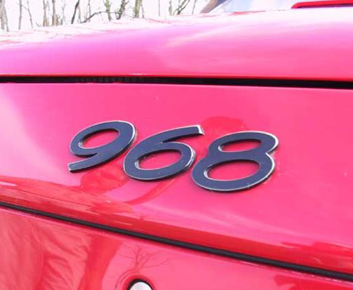 2) Edged rear 968 badge – I have no idea why they made a switch here. Again, this slightly larger font and sharp edged emblem was only used on the first few 100 cars or so. There is no separate listing in the Porsche PET catalog for two different types of emblems. The rounded emblem showed up about the same time as the recessed hood badge went out.