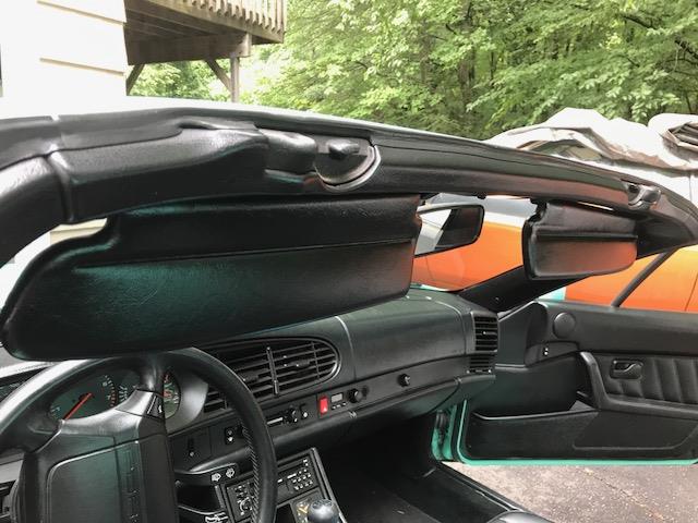 Sun visor mirrors – So this is a very early change. As in, only the first few 968s do not have sun visor mirrors. Minty does not have them. The Matador does. The non-mirror visors appear to be a carryover from the European 944s?